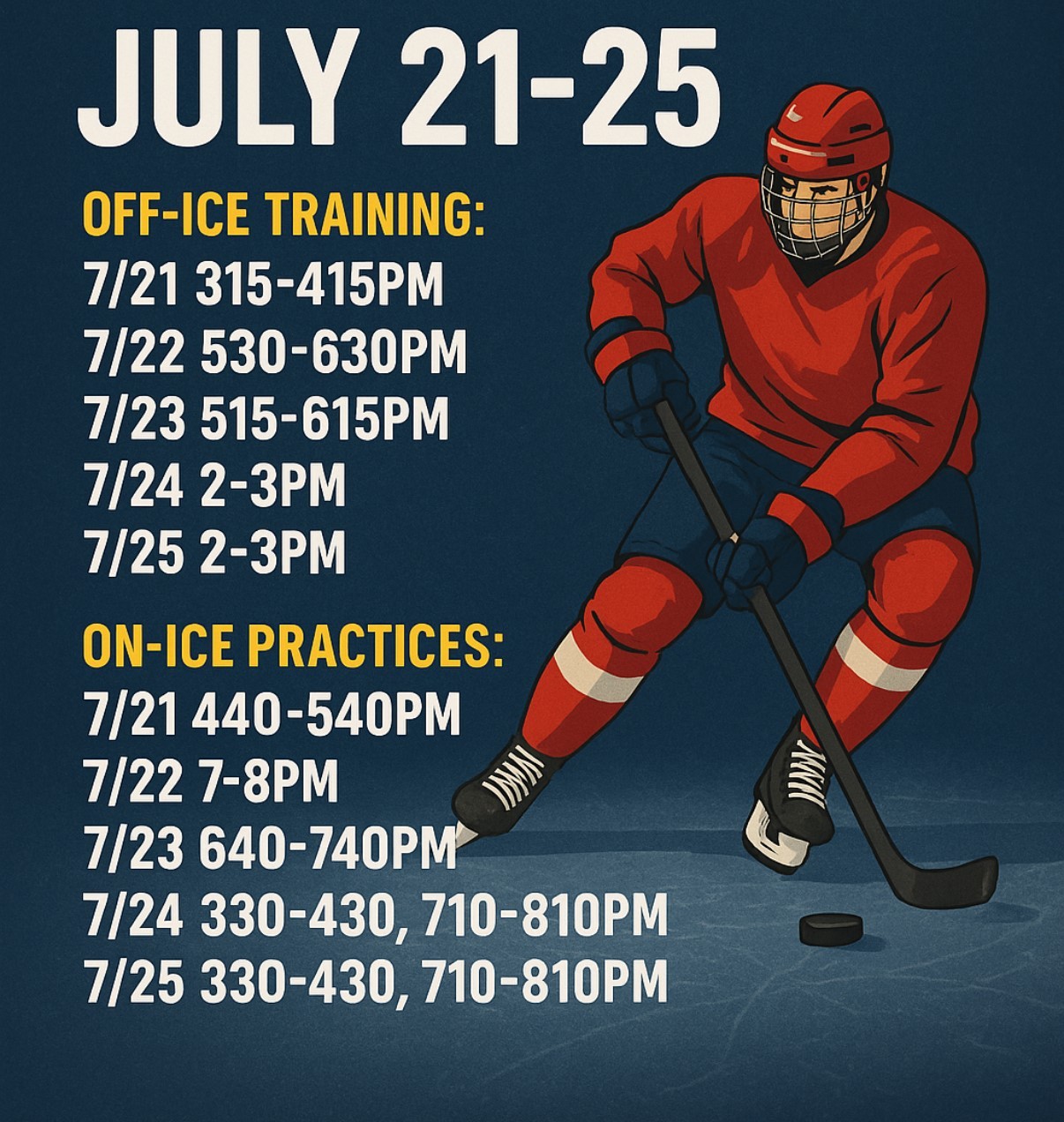 This intensive program combines advanced on-ice skill development with high-performance dry land training to build the speed, strength, and hockey IQ needed to succeed at the next level. With a focus on preparation for varsity, junior, college, and elite competition, athletes will be challenged every session to maximize their potential.